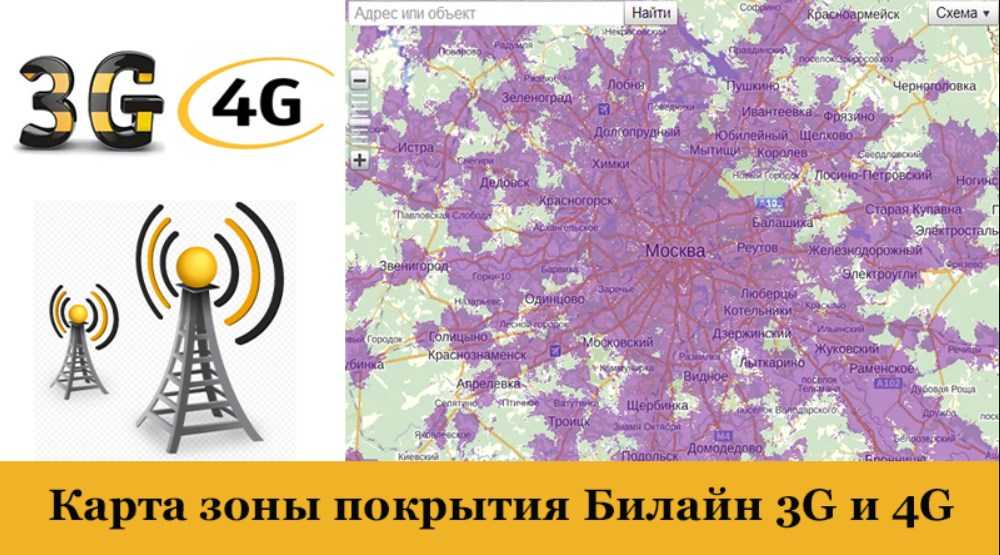 Покрытие 3G и 4G Интернета у мобильного оператора Beeline