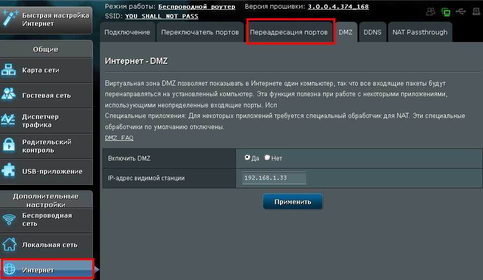 - Возможно также часть проблем удастся устранить путем включения функции открытого DMZ сервера. Его работа будет заключаться в том, чтобы перенаправлять абсолютно все внешние запросы из интернета на один и тот же определенный IP адрес внутри вашей локальной сети.