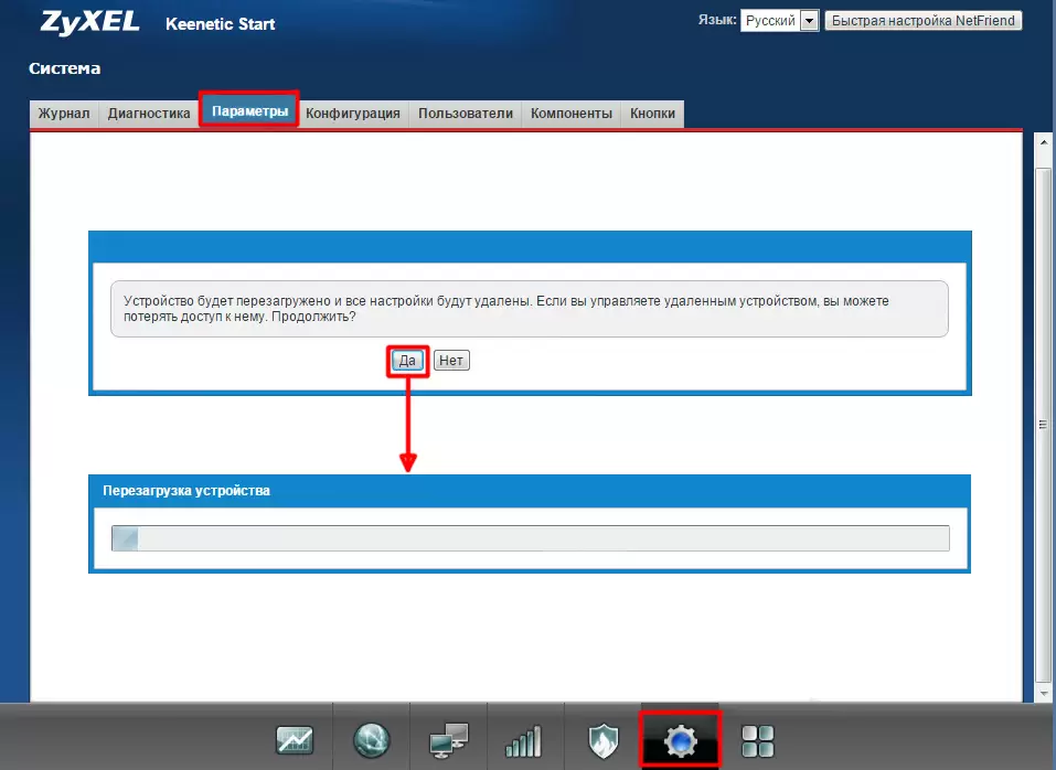 Есть несколько способов перезапустить кинетический роутер. У большинства моделей есть кнопка питания, поэтому вы можете нажать на нее и немного подождать. В остальных случаях придется зайти в меню. Там нажмите на значок шестеренки, расположенный в левом столбце внизу. Откроется вкладка настроек. Нажмите «Перезагрузить».