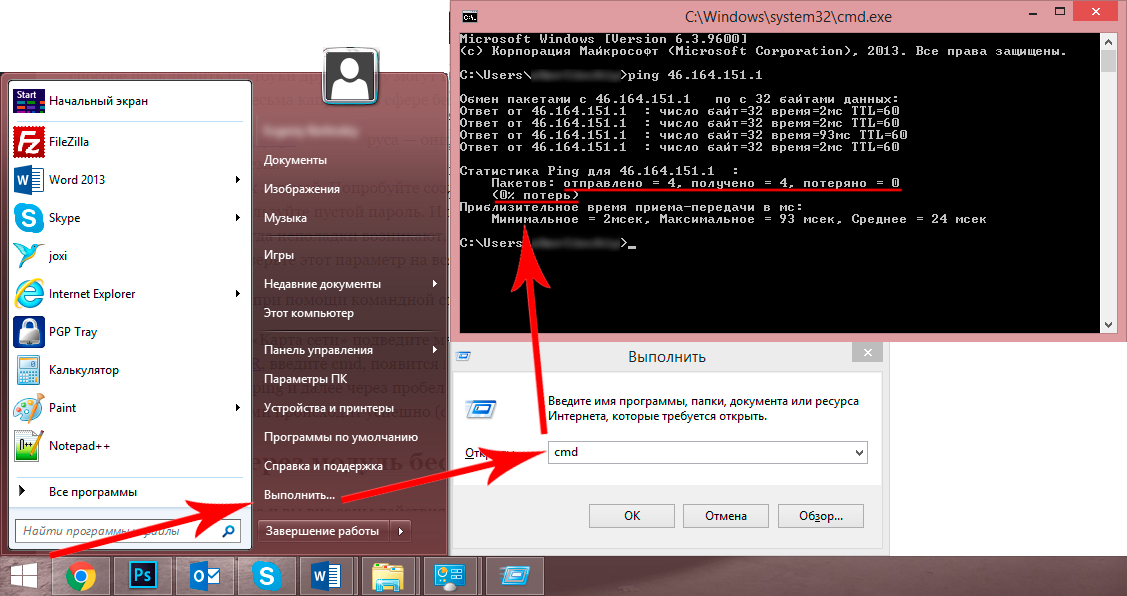 - поставить маршрутизатор в метре от компьютера и проверить связь. Если она есть, то перейти к следующему пункту;