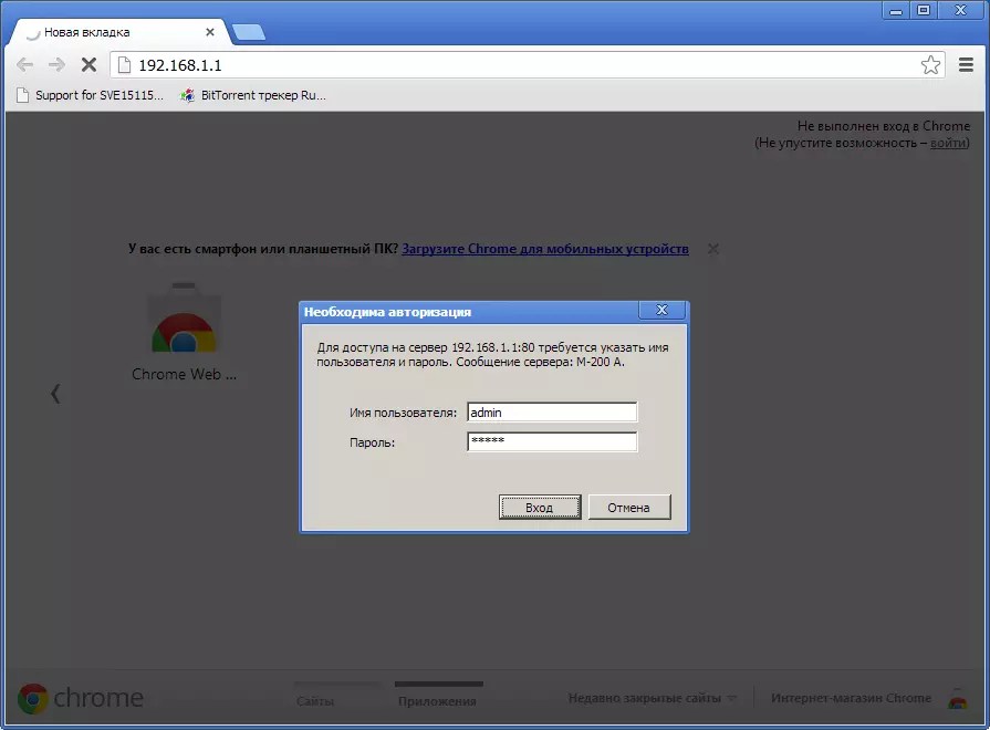 Чтобы настроить модем, необходимо попасть на его веб-интерфейс. Для этого в адресной строке своего любимого браузера введите http://192.168.1.1, и нажмите ввод. Если все сделано правильно, модем запросит у вас имя пользователя и пароль администратора. По умолчанию в качестве логина и пароля используется слово admin.