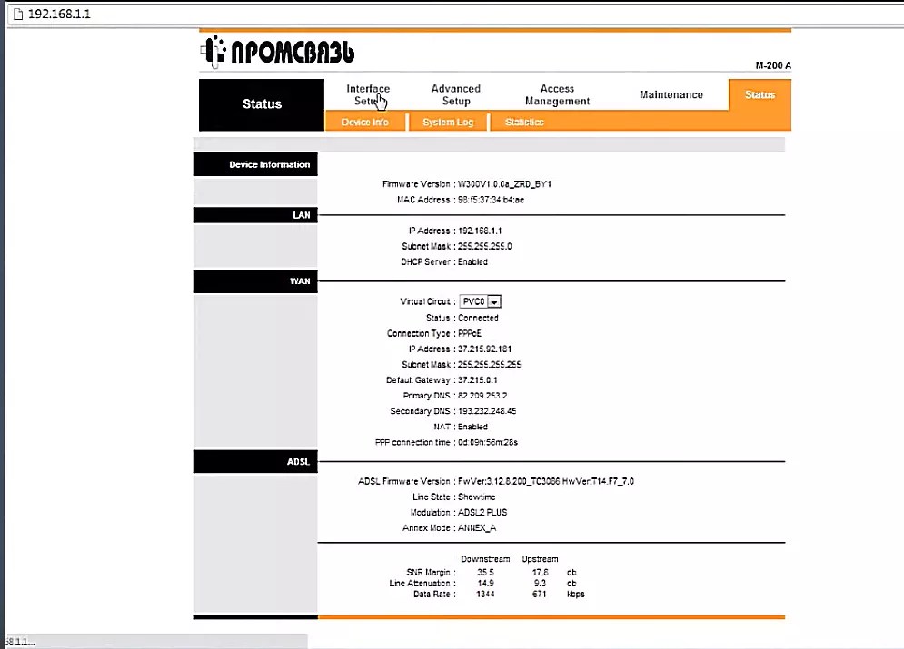 - Идем в настройки модема по адресу https://192.168.1.1.