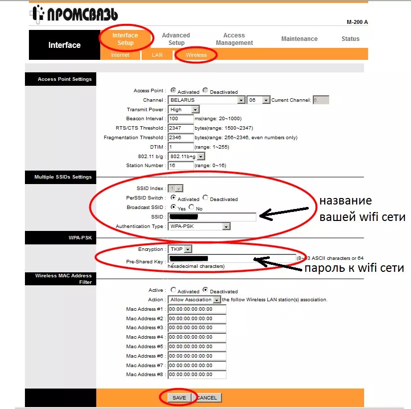 Обязательно меняем пункт Pre-Shared Key. Это ваш пароль на вход в вашу wi-fi сеть. Для удобства поменяйте SSID- это название вашей сети, сделайте его уникальным, чтобы узнавать. Назовите его (например) BIGMAN (английская раскладка обязательна), или по — своему.
