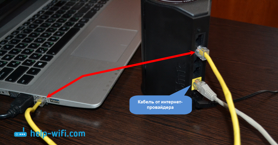 В порт «Internet» (он желтый), подключите интернет. Кабель от вашего интернет-провайдера. Вот кстати зря они сделали желтый WAN порт, и положили желтый сетевой кабель в комплекте. Многие будут путаться.