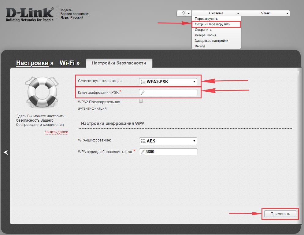 В разделе «Сетевая аутентификация» нужно указать «WPA2-PSK». По окончании настройки нужно сохранить изменения.