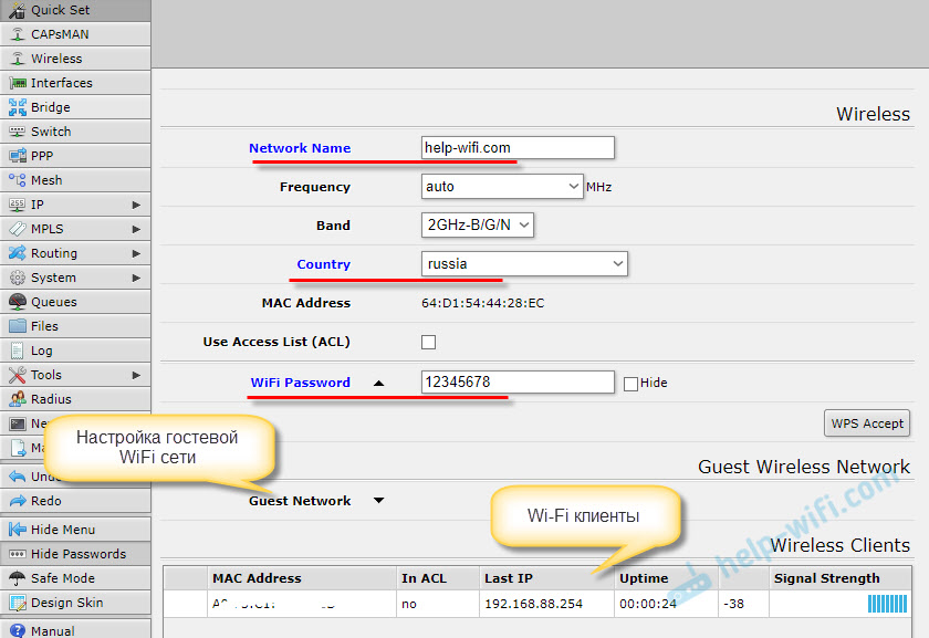 Настройка Wi-Fi сети и пароля на MikroTik hAP Lite TC