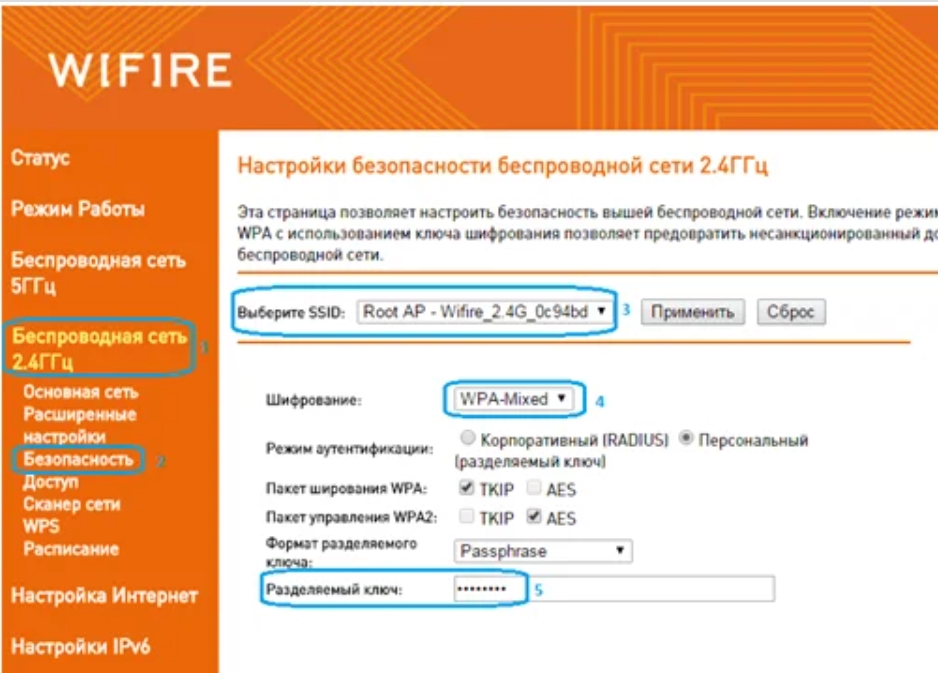 В разделе безопасность, защищаем беспроводную сеть абонента