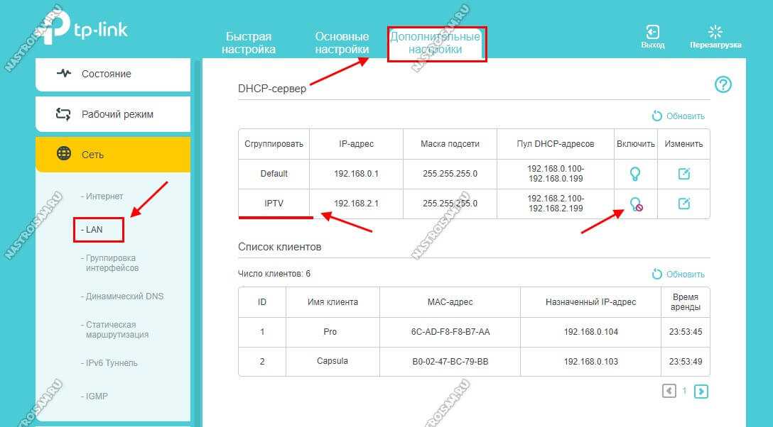 Переходим в раздел «Дополнительные настройки» → «LAN»: