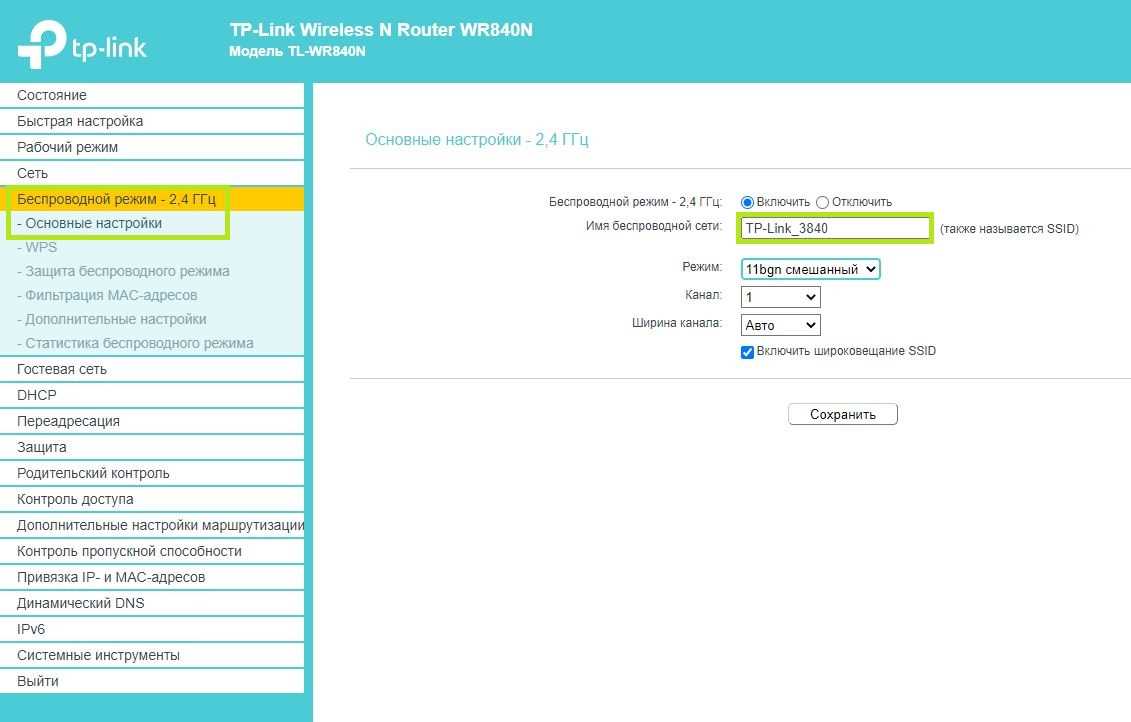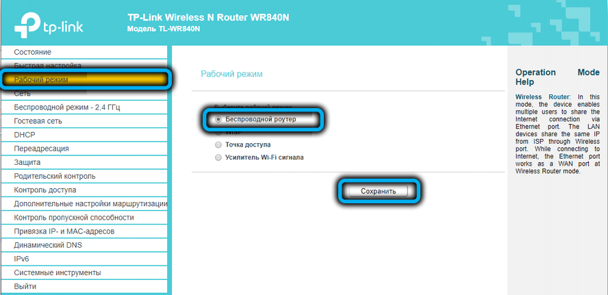 Настройка беспроводного режима