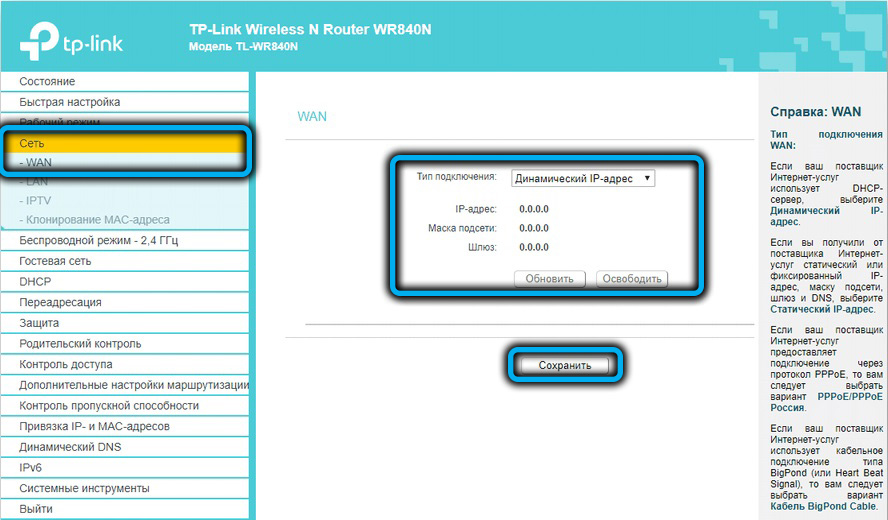 Подключение роутера TP-Link TL-WR840N к интернету