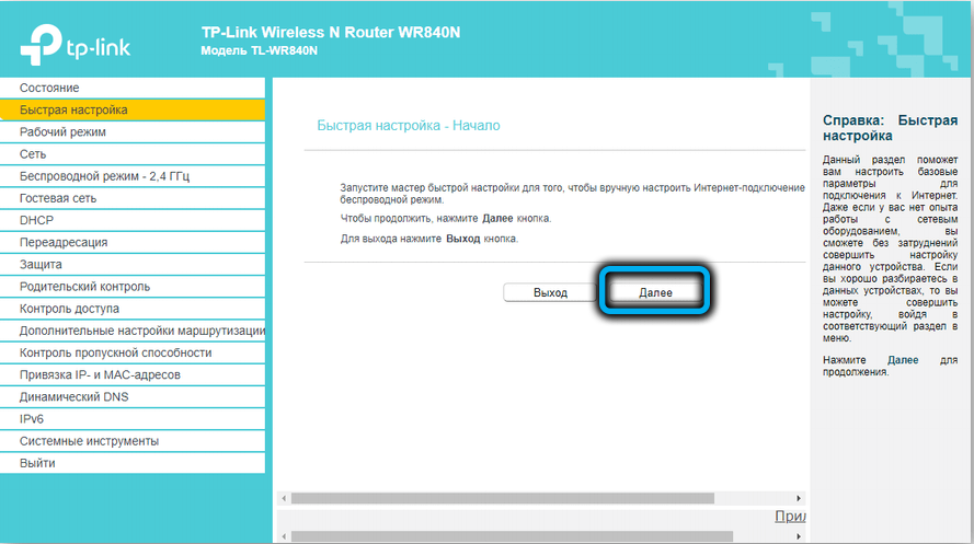 - При первом запуске вас должен поприветствовать мастер быстро настройки. Если этого не произошло, то в левом меню нажмите на «Быстрая настройка» (Quick Setup).