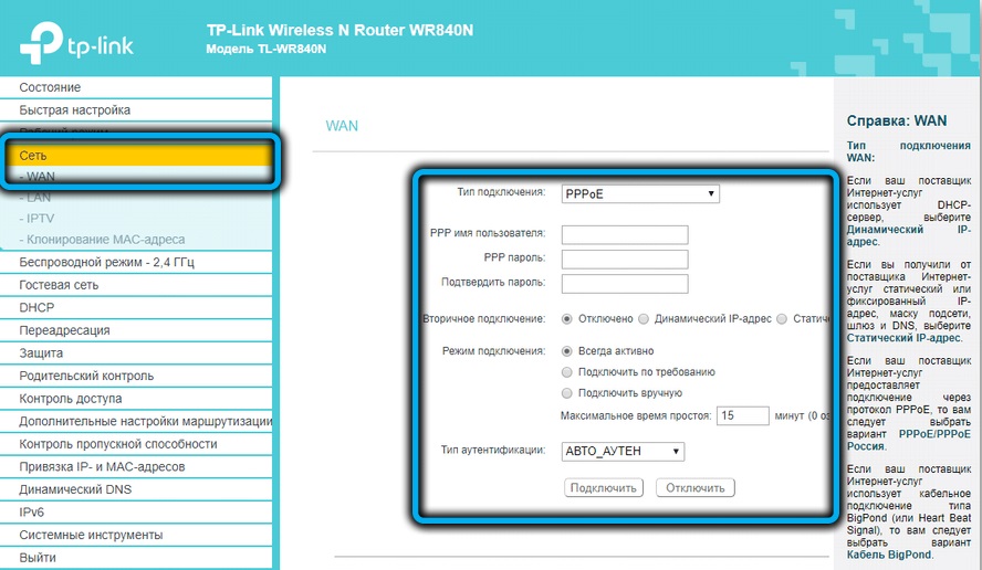PPPoe режим в роутере TP Link