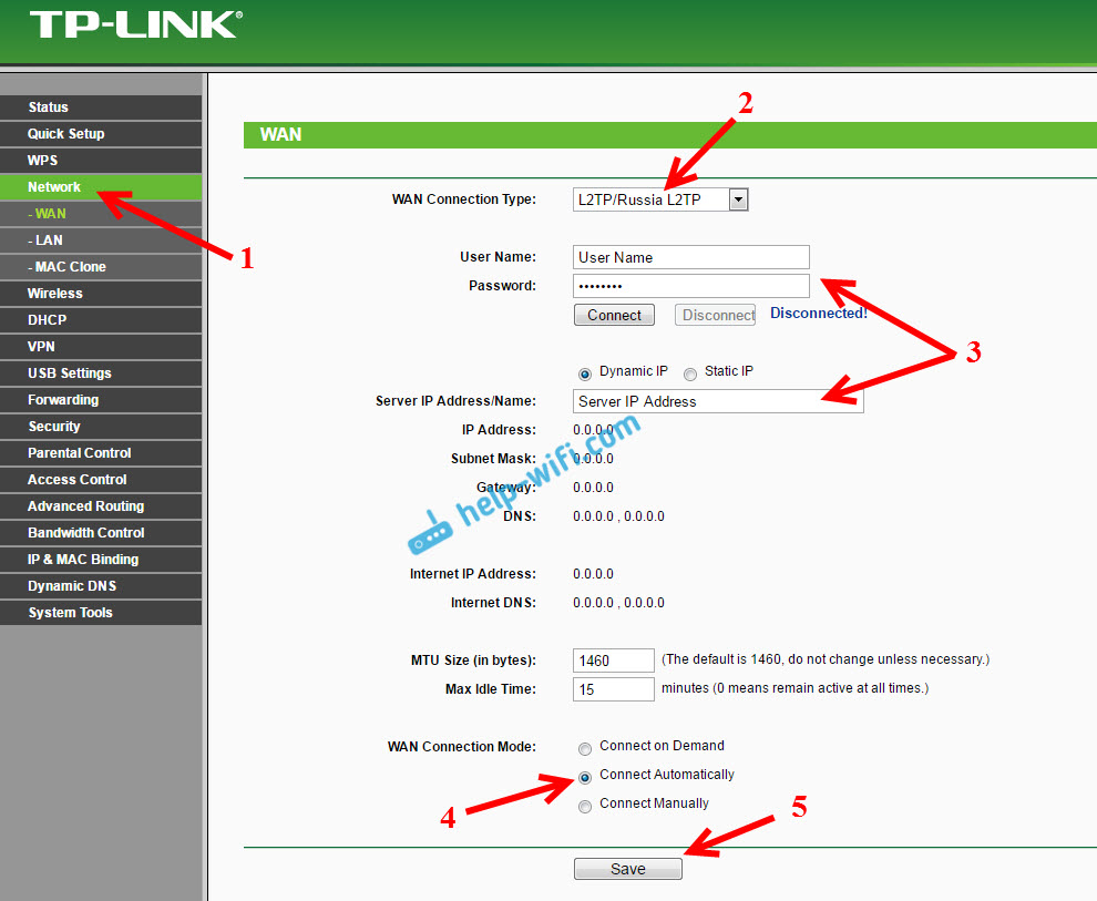 На роутерах TP-LINK, настройки подключения к провайдеру можно изменить на вкладке Network (Сеть) – WAN. Тип подключения выбираем в выпадающем меню WAN Connection Type (Тип подключения WAN). Соответственно, если у нас подключение Динамический IP, то выбираем эту технологию, и сохраняем настройки.