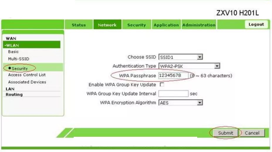 Если в меню настроек есть раздел Security, где можно выбрать ключ шифрования WPAPassphrase с длиной от 8 до 32 символов.