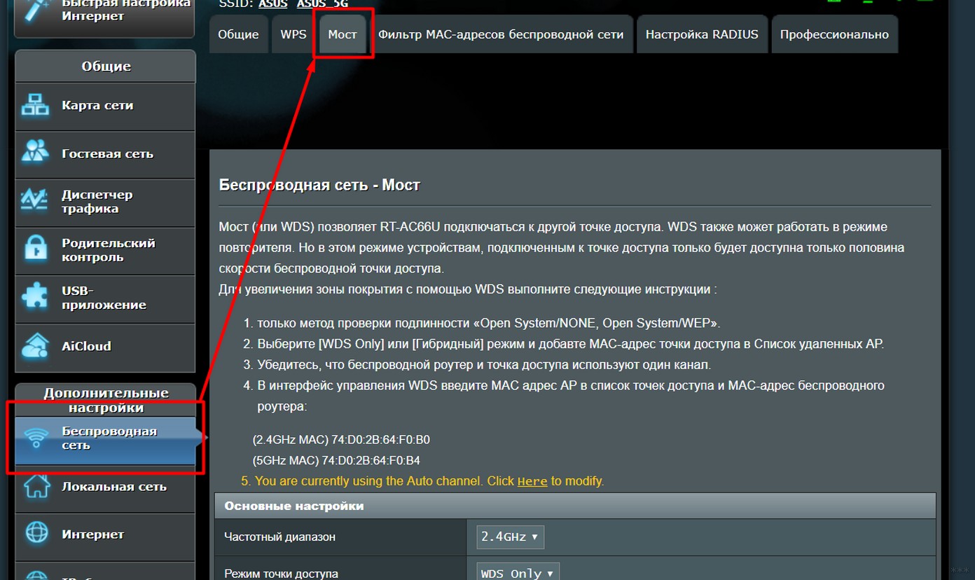 Настройка моста на роутере Asus