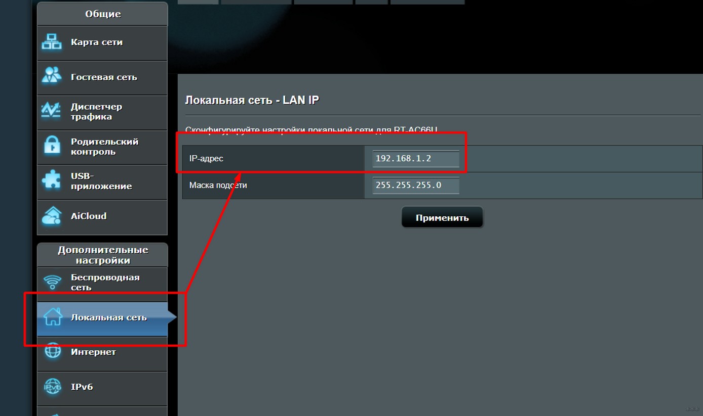 - IP адрес – «Сеть – LAN»:
