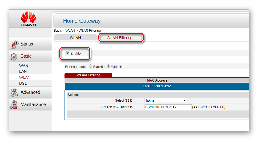 Данная функция присутствует в роутерах с целью максимальной защиты пользователей от несанкционированного подключения к их домашней сети. В роутере HUAWEI ее настройка находится также в разделе WLAN, но на отдельной вкладке.