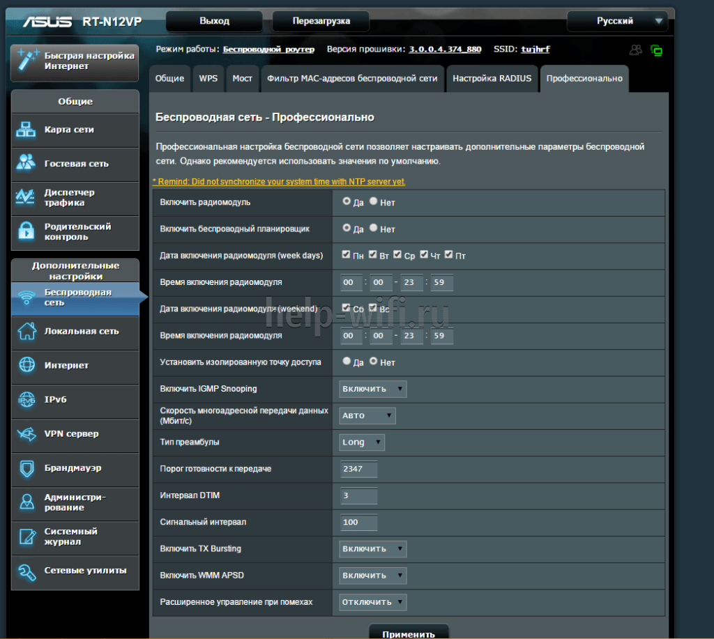 Для модификации Rt N12 VB руководство рекомендует пользователю настроить ряд параметров, собранных на вкладке «Профессионально»