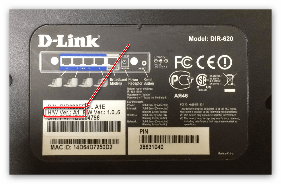 - Первое, что следует знать перед прошивкой роутера – его аппаратная ревизия: электронная начинка девайса отличается для девайсов одной модели, но разных версий, поэтому прошивка от DIR-620 с индексом A не подойдёт к роутеру той же линейки с индексом A1. Точную ревизию именно вашего образца можно узнать из стикера, приклеенного к днищу корпуса роутера.