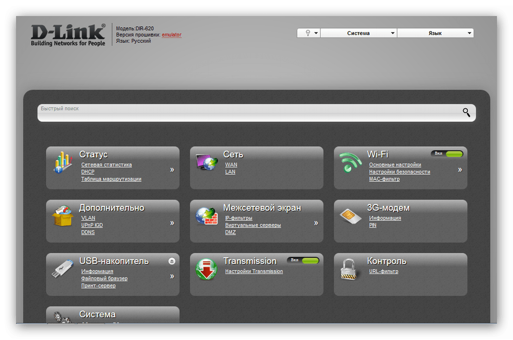 - Самое время перепрошить роутер D-Link DIR-620! Заходим в браузер и переходим в меню настроек модема.