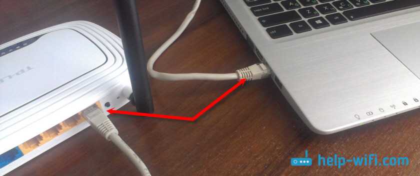 Подключитесь к роутеру кабелем, который был в комплекте в коробке. Один конец кабеля включите в компьютер или ноутбук а другой в один из жёлтых разъёмов на роутере. Если у вас нет короткого кабеля или нет под рукой компьютера или ноутбука, вы можете настроить роутер TP-LINK TL-WR-841 и через вайфай. Для этого подключитесь к вайфай которая называется изначально в вашем роутере.