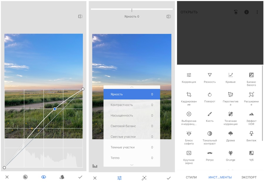 Подходит для простой обработки — применения фильтров и эффектов, наложения текстов и наклеек, создания коллажей.