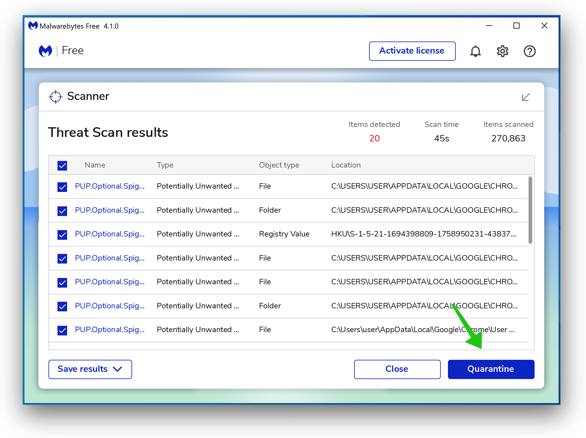 Установить Malwarebytes, следуйте инструкциям на экране.