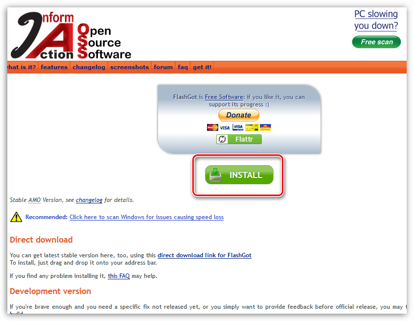 К главным достоинствам плагина «Флешгот» можно отнести: