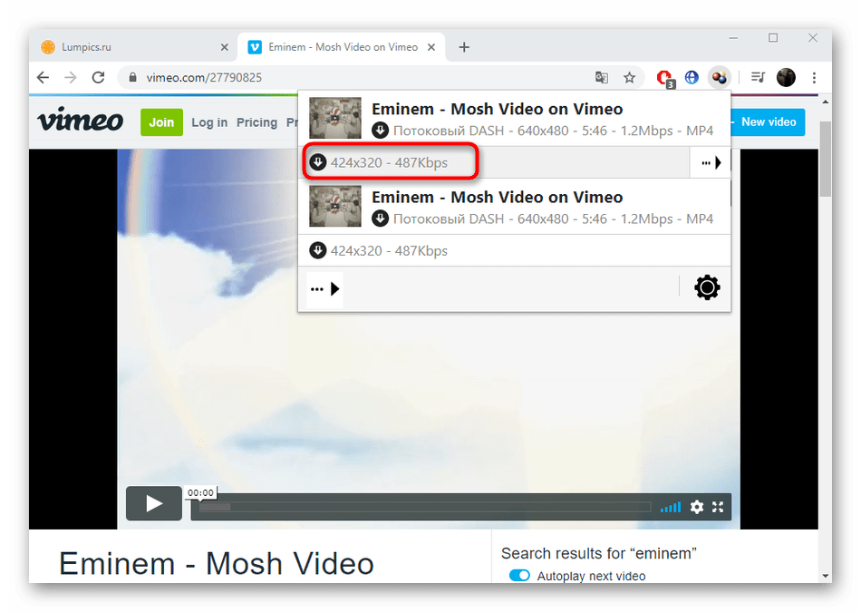 После инсталляции можно сразу же открыть Vimeo и найти там необходимое видео, либо перезагрузить уже открытую вкладку.