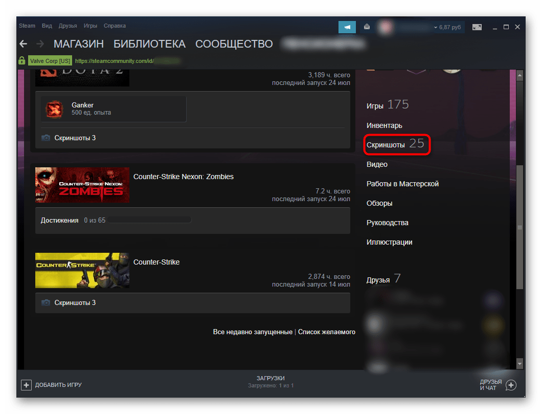 Простой способ узнать, где найти скриншоты Стим – это воспользоваться самой программой. Благодаря этому способу не нужно определять, в какой системной папке расположены файлы. Итак, где в Стиме найти скрины и что для этого нужно сделать: