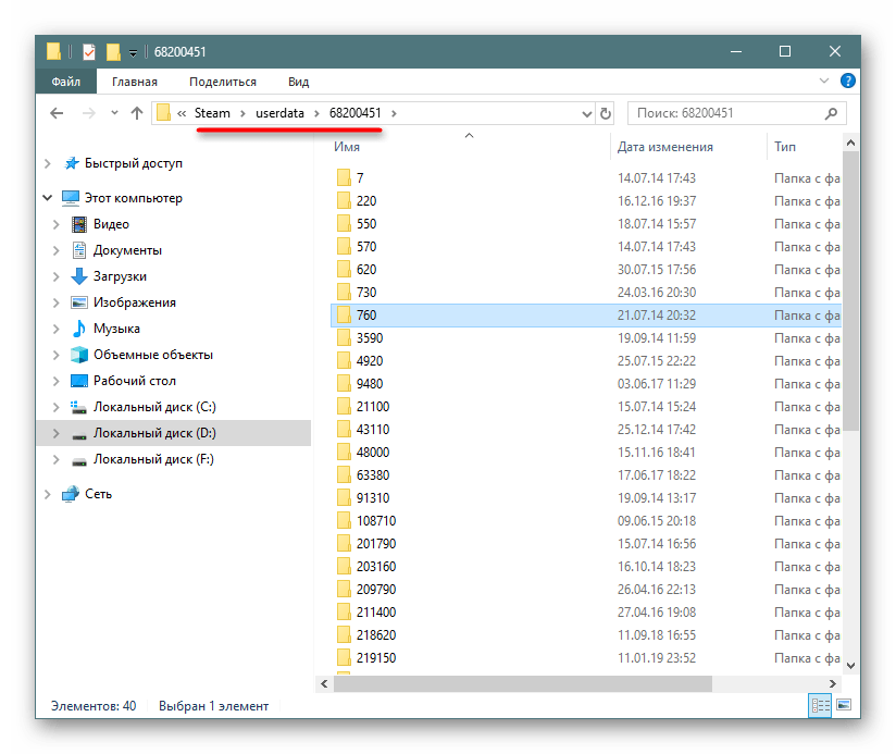 - Здесь найдете много папок с числовым ID кодом (названия папок). Сложность заключается в том, чтобы понять, какой номер принадлежит той или иной игре. Геймеру потребуется открывать те директории, которые располагают в себе файлы «Remote».