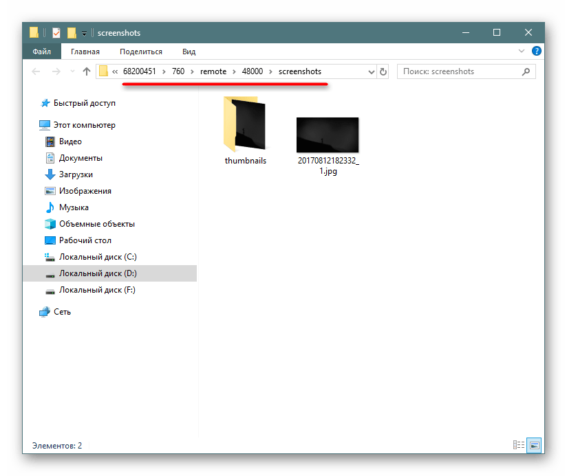 - Все изображения в папке хранятся в двух режимах просмотра. Корневая папка содержит полную исходную версию снимка, а эскизы содержат эскизы снимков экрана, которые являются предварительной версией основных в ленте Steam. По миниатюре пользователь может быстро определить, интересна ли ему ваша фотография.