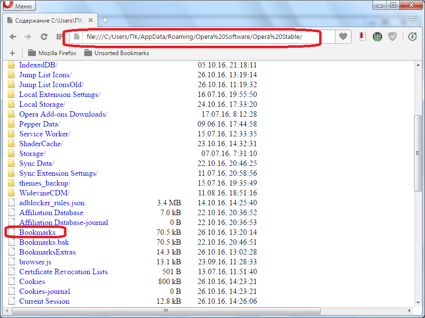 - На компьютере заходим в папку с закладками, расположенную по адресу: C:\Users\Имя_Пользователя\AppData\Roaming\Opera Software\Opera Stable.