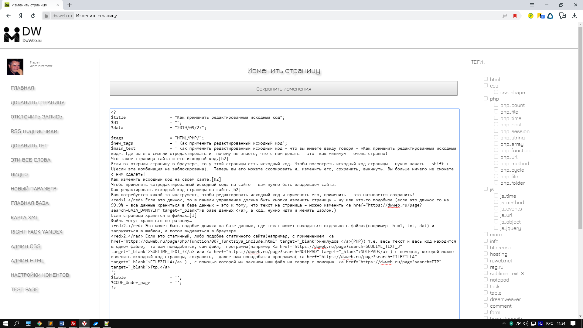 Сегодня, на момент редактирования данной страницы, весь текст выше данной строки, о редактировании сайта через браузер я написал 11.10.2019. , а все остальное было написано, еще при царе горохе!