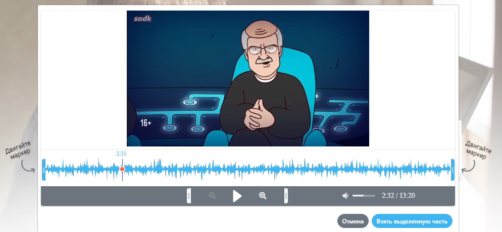Здесь же пользователь может просмотреть обрезанный фрагмент онлайн — достаточно нажать на самую правую кнопку.
