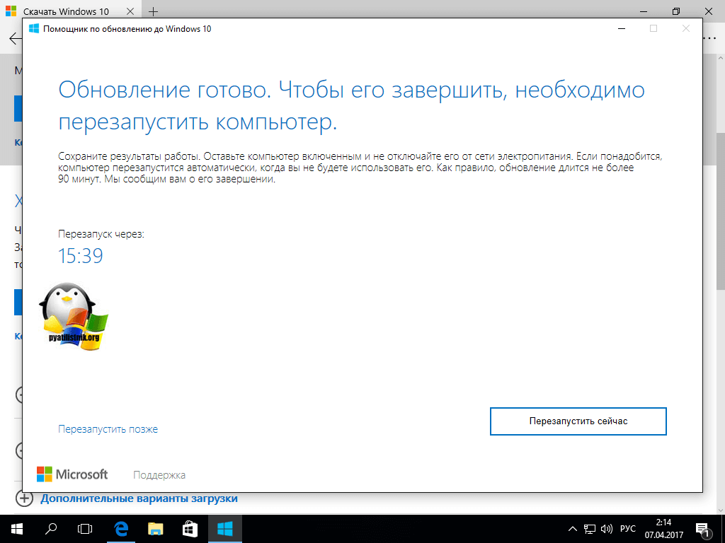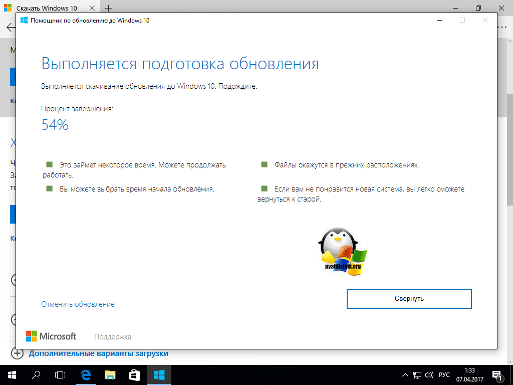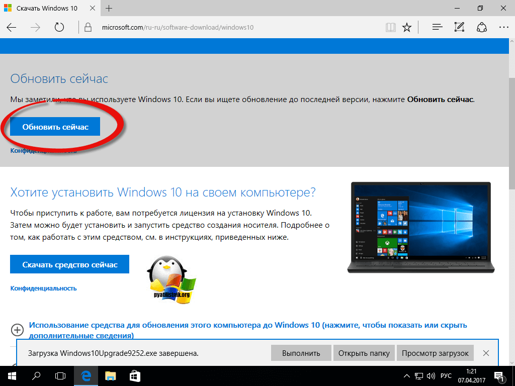 Установка Windows 10 Creators Update через Update Assistant