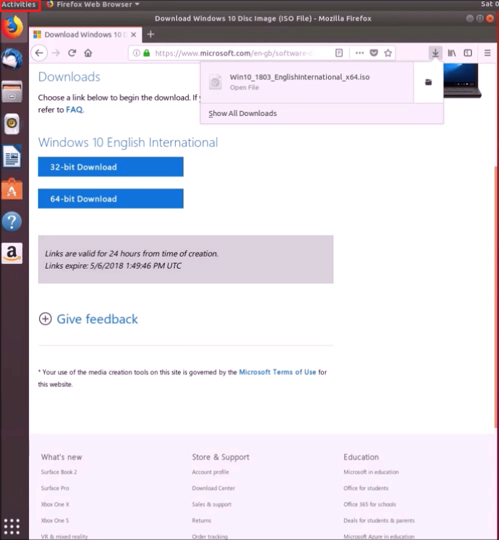 In Ubuntu, we will check the MD5 of the Installation .iso using the Terminal. To the top left select Activities: