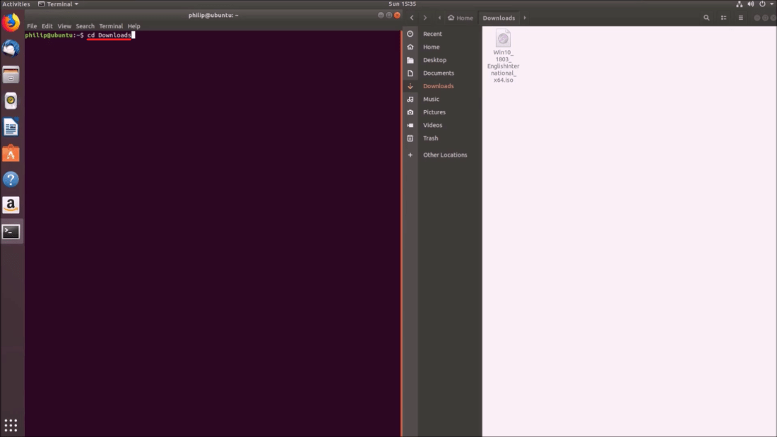 Snap the Terminal to the left and Downloads to the right: