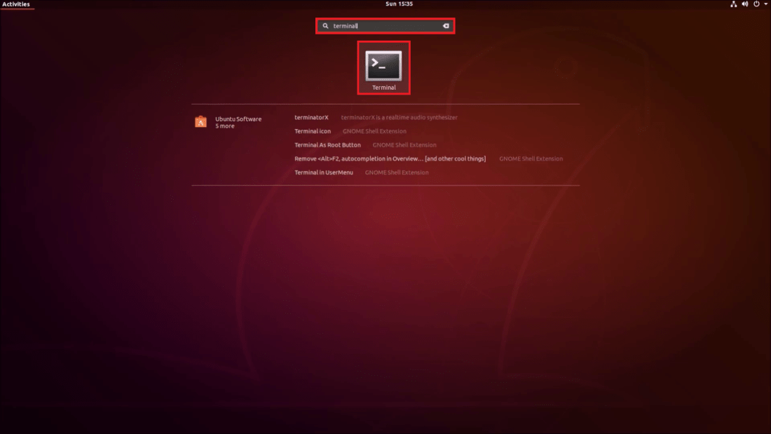 Then type in Terminal and select the Terminal: