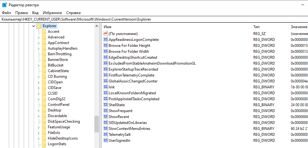 Не исключено, что проблема возникла из-за внесения изменений, блокирующих функционал нижней панели, в реестр Windows. Это могло произойти под влиянием стороннего ПО (например, CCleaner). Для исправления ошибки понадобится выполнить несколько простых действий: