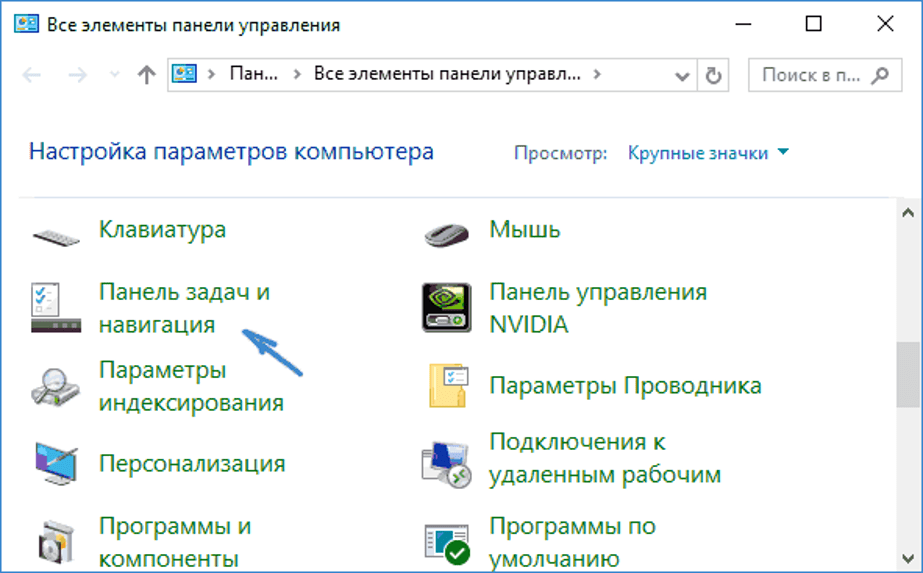 - В меню Панели управления выбрать раздел «Панель задач и навигация».