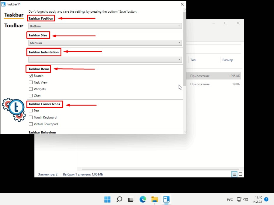 Taskbar 11 – портативное программное обеспечение, функционал которого нацелен на изменение визуальной составляющей рабочего стола. В основном программа позволяет изменить визуализацию панели задач. Главное преимущество заключается в том, что все выполняется быстро и в автоматическом режиме.