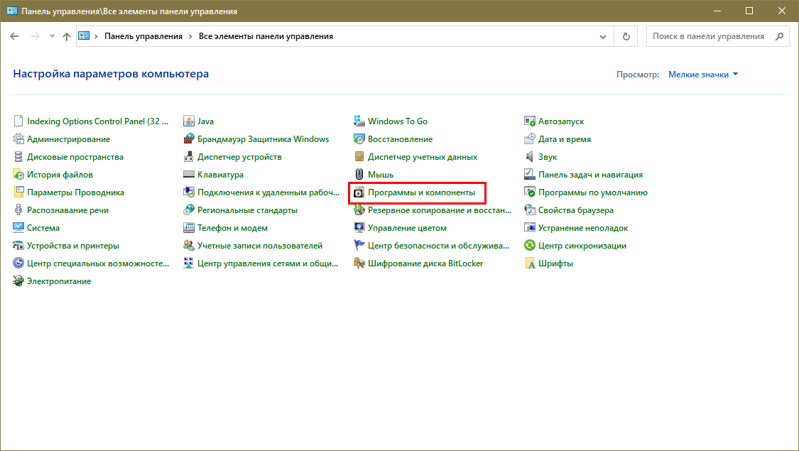 Инструкция по удалению браузера Internet Explorer на Windows 10 через «панель управления»