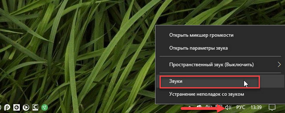 - Кликните правой кнопкой мыши значок динамика в области панели задач.