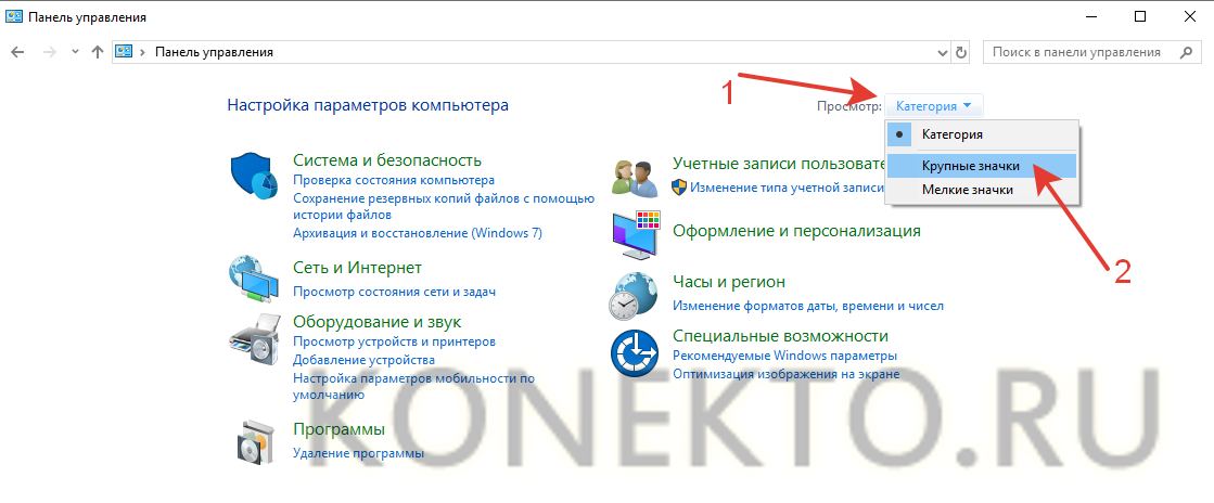 В разделе «Просмотр» выбираем опцию «Крупные значки».