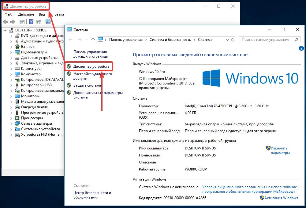 Вызов «Диспетчера устройств» через «Систему»