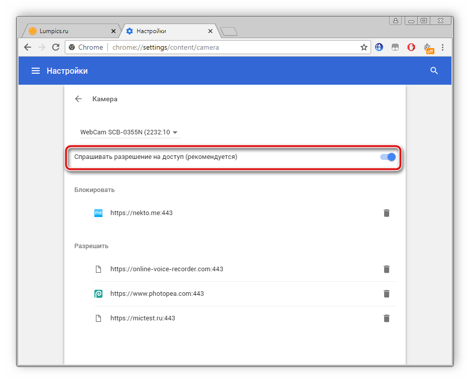 Сейчас некоторые сайты запрашивают разрешение для использования веб-камеры. Чтобы не давать им этого права или просто избавиться от навязчивых уведомлений, можно отключить оборудование через настройки. Давайте разберемся с выполнением этого в популярных браузерах, а начнем с Google Chrome: