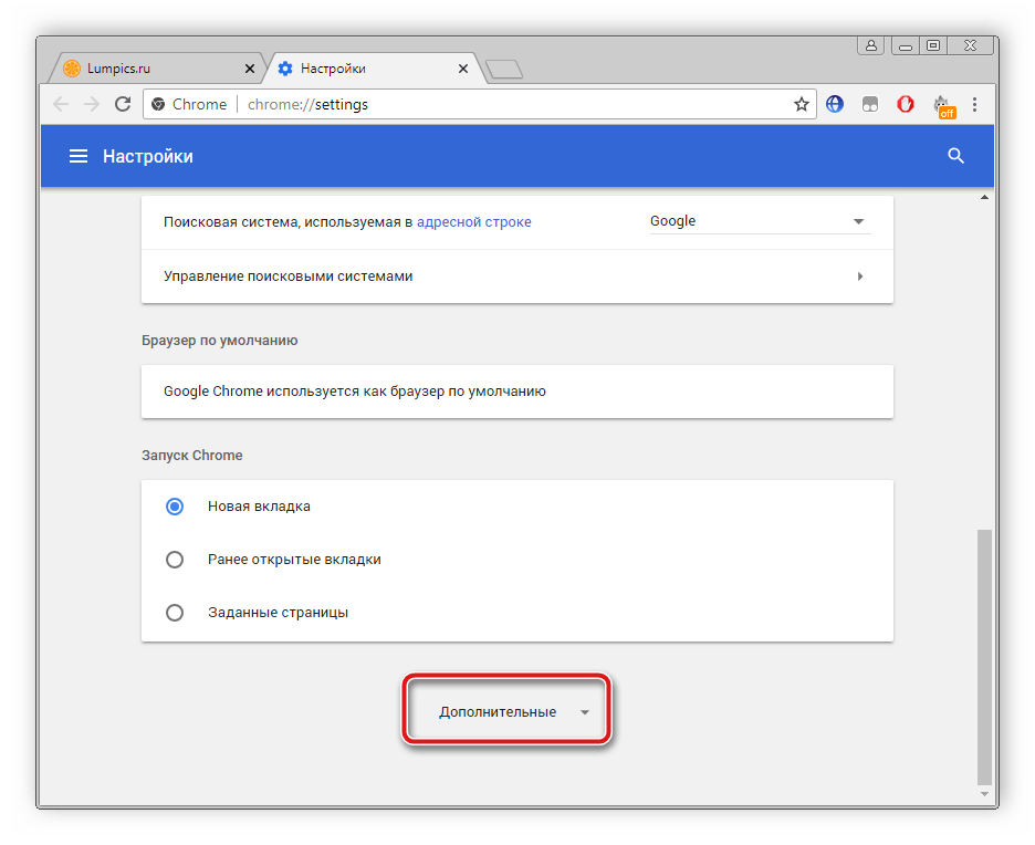 Опуститесь вниз окна и нажмите на «Дополнительные».