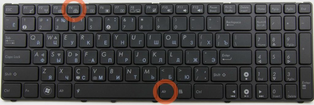 - Нажать две кнопки на клавиатуре: «Alt» + «F4»;