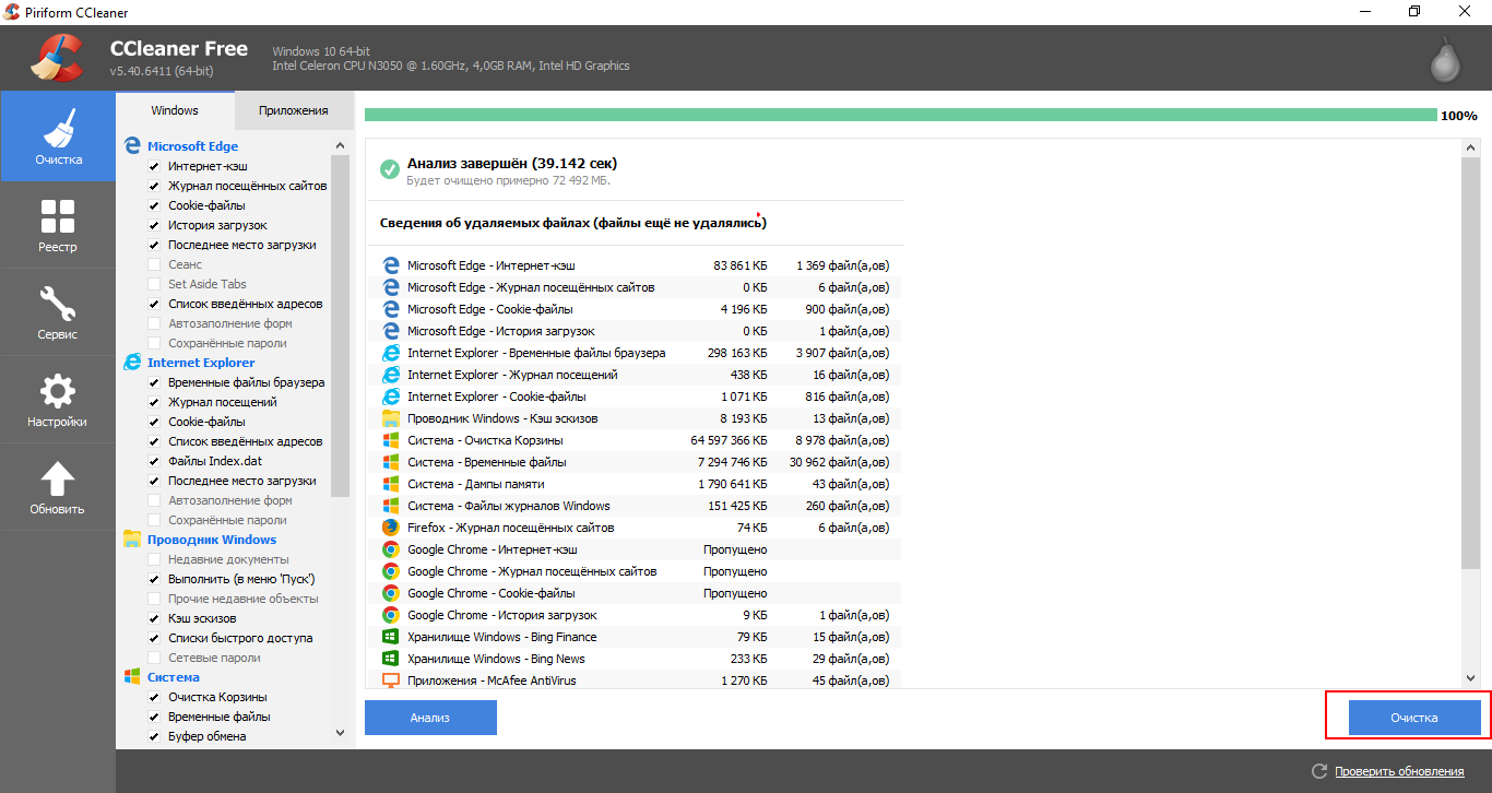 Главная и наиболее распространённая функция утилиты CCleaner — это очистка устройства от мусора, очищение кэша и удаление временных, более ненужных системе файлов